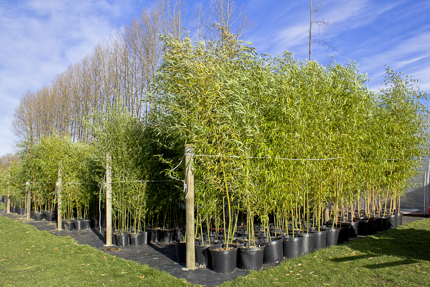 Delhiwind Bamboo has been a wholesale bamboo nursery since 1995, supplying hardy bamboos to retail outlets throughout western North America. Our nursery encompasses 20 acres on the bank of the Nooksack River, in the northwest corner of Washington state. We field grow extensive quantities of over 25 varieties of hardy bamboo in our perfect sandy loam soil. Throughout the winter and early spring, we dig and pot 5, 7, and 15 gal plants and deliver them to retail nurseries from Arizona to British Columbia. Delivery to your nursery is included in the prices listed on our wholesale availability list, which is available upon request.