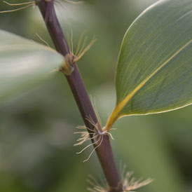 Old canes should be removed from the grove or hedge each winter. Seldom do I allow any cane to stay in the grove longer than three years. This opens up the grove to light, and stimulates the plant to send up new shoots. Bamboo sheds its old leaves in July. Occasionally leaves first turn yellow and then drop forming a beautiful mulch in the grove. By August the plant has grown two new leaves for each one shed and is greener and fuller than ever.
